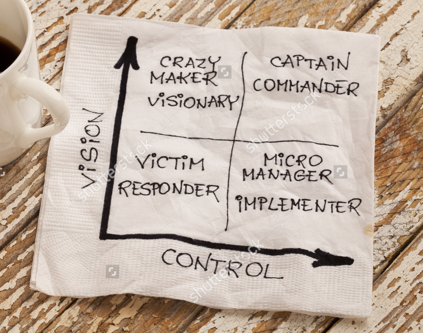 The top left quadrant provides a great example of what high vision, low control management style looks like, based on the consistency and accountability of team performance. The leadership traits indicate high levels of vision, inspiration and charisma, but low attention to process, details and data-driven decision-making. Under those circumstances, a sales team would be expected to perform erratically. They may also demonstrate high levels of activity with inordinately low returns.