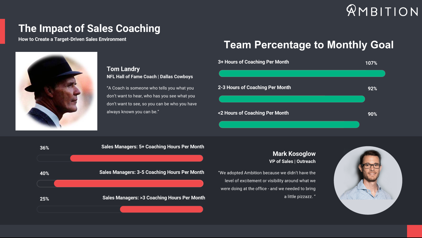 To steal a line from Tom Landry, “a coach is someone who tells you what you don't want to hear, who has you see what you don't want to see, so you can be who you have always known you could be.” Well, to be an elite sales coach in the modern era, you must create a target-driven sales environment.