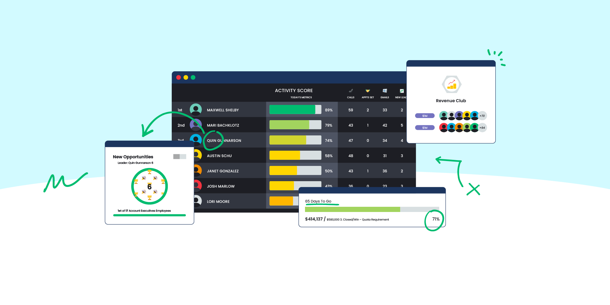 - An appreciable understanding of how sales reps handle various elements in the sales cycle, only visible through the lens of a broader timeframe.